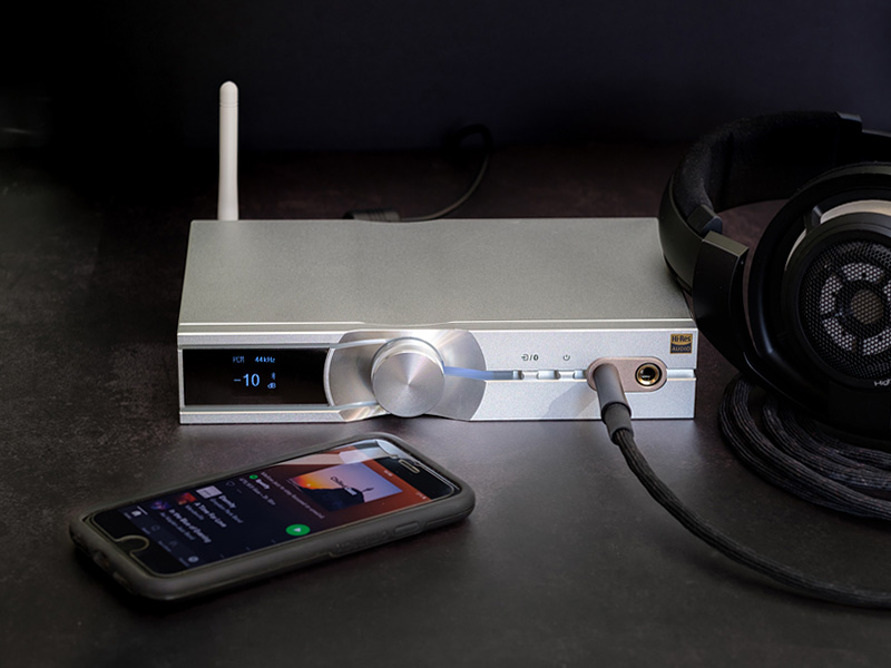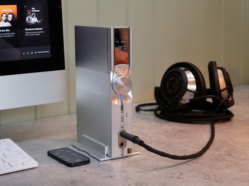 Wzmacniacz słuchawkowy zapewnia doskonałą równowagę między dynamiką a kontrolą, niezależnie od tego, jakie słuchawki zostaną podłączone - od czułych modeli dokanałowych po wymagające planarne. Moc wyjściowa przekracza 1000 mW przy 32 Ω (wyjście zbalansowane). Regulacja głośności odbywa się w domenie analogowej poprzez drabinkę rezystorową, sterowaną precyzyjnym mikrokontrolerem.