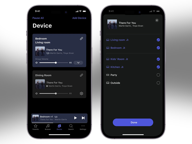 Łatwo możesz stworzyć jednolity system dźwiękowy w całym domu, korzystając z WiiM Ultra oraz istniejących urządzeń Amazon Echo, Google Home i WiiM. Zarządzaj strumieniowaniem muzyki w różnych pomieszczeniach za pomocą intuicyjnej aplikacji WiiM Home - kontroluj głośność, synchronizuj głośniki, zapisuj ulubione utwory, ustawiaj alarmy i dostosowuj ustawienia, wszystko z jednego centralnego miejsca.