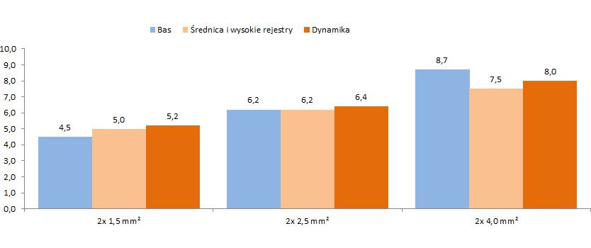 Wykresy prezentują pozycję i mocne cechy kabla serii Premium