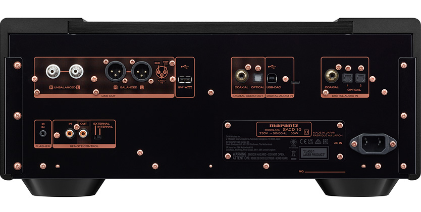 Marantz SACD 10 obsługuje zbalansowane źródła dźwięku przez USB-A i USB-B DAC, a także formaty DSD 256 i PCM 384 kHz/32 bit.