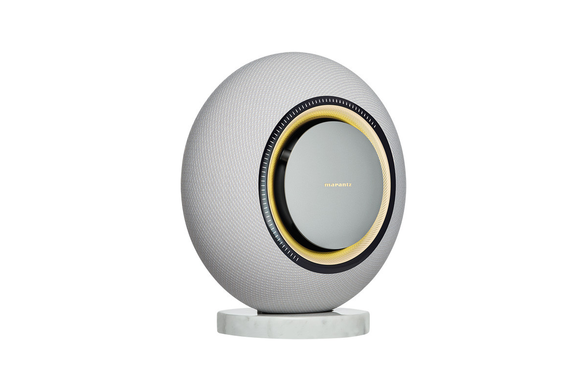 mocy oraz sześć starannie dobranych przetworników, w tym 165 mm subwoofer, dwa 25 mm głośniki wysokotonowe i trzy 50 mm pełnozakresowe. Jego obudowa została wykończona tkaniną Marantz Radiance™ 360° Seamless Fabric, łączącą elegancję, trwałość i akustyczną przejrzystość, a intuicyjna obsługa odbywa się poprzez podświetlany pierścień LED systemu Marantz AuraControl™.
