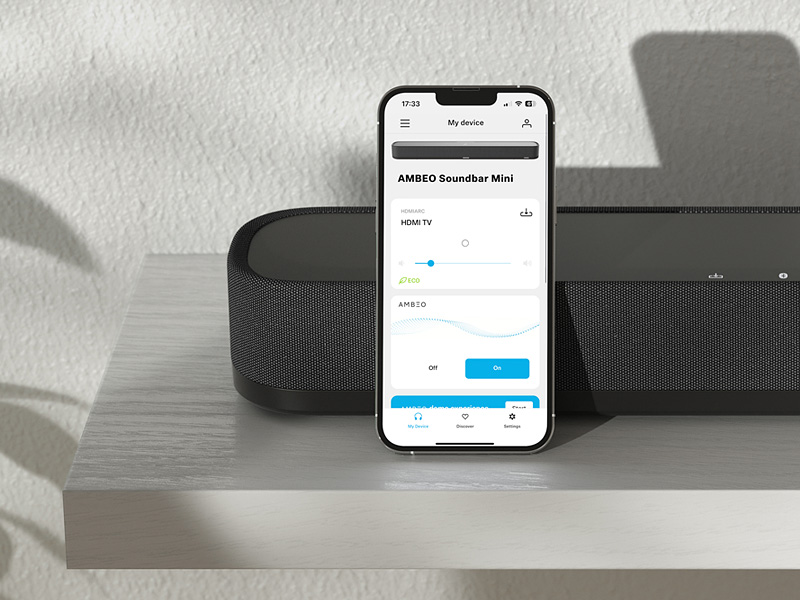 Intuicyjna aplikacja Smart Control oraz interfejs sieciowy Sennheiser gwarantują płynną i przyjemną obsługę, w tym wiele ustawień dźwięku i korektora, a także wiele innych funkcji zaprojektowanych tak, aby w pełni wykorzystać możliwości AMBEO Soundbar Mini.