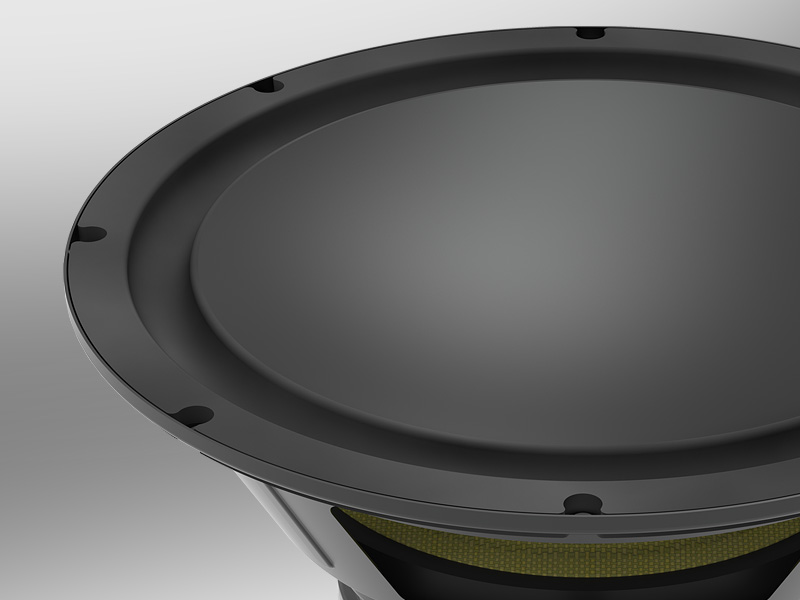 Zamknięta obudowa mieści 12" przetwornik C-CAM (ceramicznie powlekany stop aluminium i magnezu) o dużym liniowym wychyleniu i potrójnym zawieszeniu, zapewniający pełną kontrolę oraz dokładne, mocne brzmienie przy minimalnych zniekształceniach. Wydajny wzmacniacz pracujący w klasie D o mocy 500 W oraz sztywna, akustycznie zoptymalizowana obudowa sprawiają, że W12 dostarcza głęboki, dynamiczny bas, który pozostaje czysty i kontrolowany na każdym poziomie głośności.