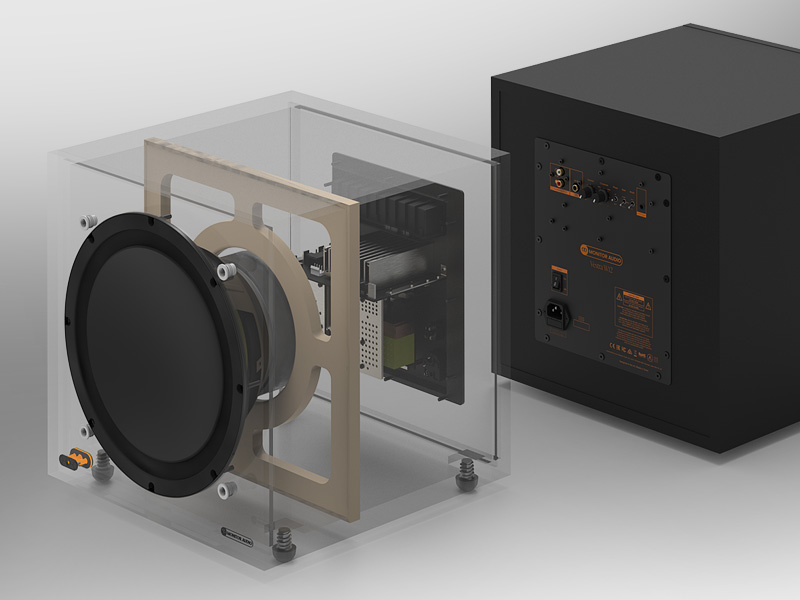 Za przetwornikiem C-CAM - wewnątrz solidnie wzmocnionej obudowy, znajduje się wydajny wzmacniacz klasy D. Od 250 W w modelu Vestra W10 do 500 W w modelach Vestra W12 i W15, układ ten został precyzyjnie dopasowany do przetwornika C-CAM, by zapewnić w pełni zoptymalizowaną, tłokową pracę - niezależnie od poziomu głośności. Efekt to wyższa wydajność i wyjątkowo niskie zniekształcenia.