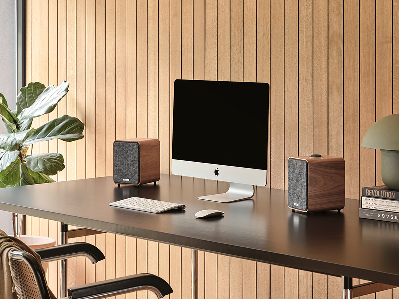 Głośniki biurkowe MR1 potrafią odmienić domowe miejsce pracy, oferując brzmienie wykraczające poza ich kompaktowe rozmiary. Dzięki wejściu audio USB C zapewniają najwyższą jakość i wysoką rozdzielczość odtwarzania z komputerów oraz urządzeń inteligentnych.
