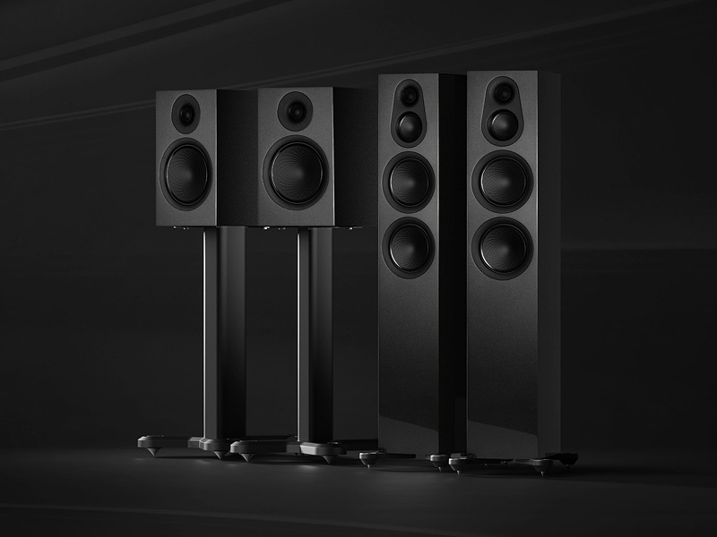 Czarne przetworniki nadają im spójny, wyrazisty charakter, a szczotkowany aluminiowy głośnik wysokotonowy wprowadza subtelny, wyrafinowany akcent kontrastu.