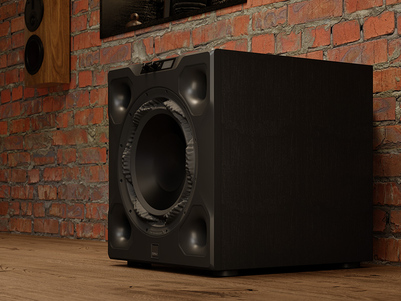 Oopracowany specjalnie dla tego modelu 16" przetwornik niskotonowy oraz wzmacniacz DSP o mocy 1500 W z ultraniskimi zniekształceniami wyznaczają nowy standard brzmienia w kinie domowym klasy High-End.