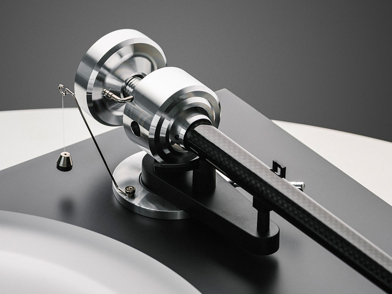 Zewnętrzna warstwa z włókna węglowego zapewnia wysoką sztywność, gwarantując precyzyjny ruch igły. Wewnętrzna aluminiowa rurka skutecznie tłumi wibracje, co przekłada się na płynne i stabilne działanie. Takie połączenie materiałów pozwoliło uzyskać ramię jednocześnie bardzo sztywne i znakomicie wytłumione. Efektem są dokładne prowadzenie w rowku, niższe zniekształcenia oraz czystsze, bardziej szczegółowe brzmienie.