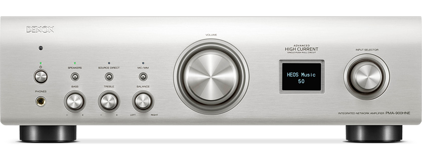 PMA-900HNE to pierwszy zintegrowany wzmacniacz Denon z funkcjonalnością HEOS® Built-In! Zaawansowana konstrukcja wzmacniacza wysokoprądowego (AHC), a także wydajny zasilacz gwarantują, że Twoje głośniki dostarczą szczegółowe, precyzyjne obrazowanie oraz potężny dźwięk.